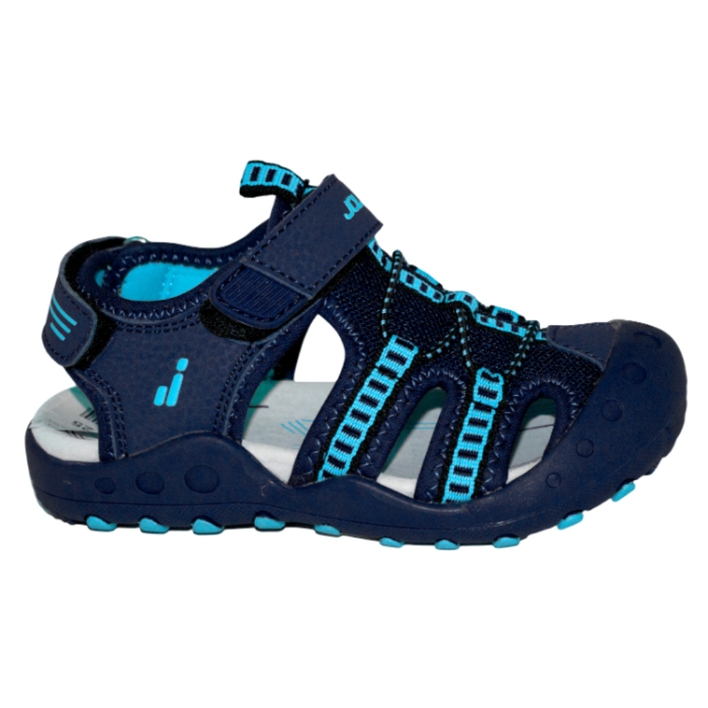 Modelo sintético y textil, con cierres de velcro, entresuela de EVA y suela de caucho.